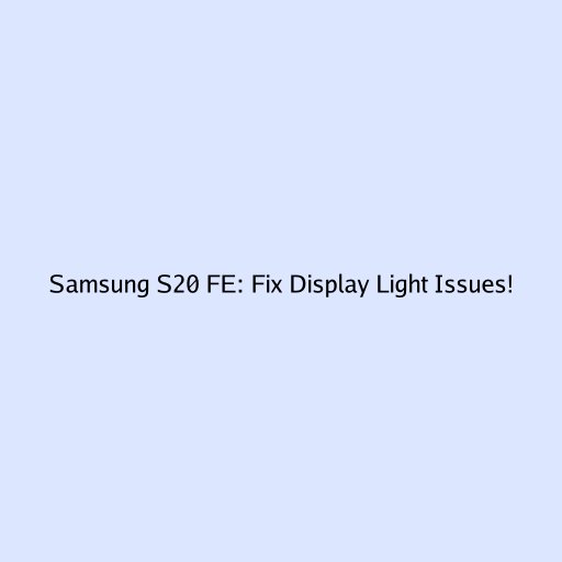 Samsung S20 FE: Fix Display Light Issues!